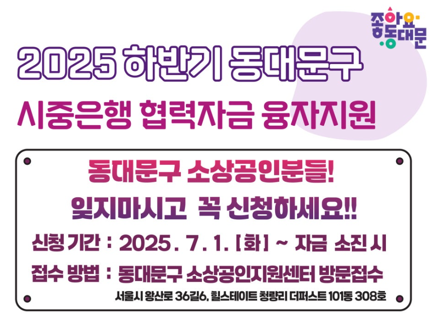 자금이 필요한 동대문구 자영업자 소상공인이라면 이자지원 받으세요!